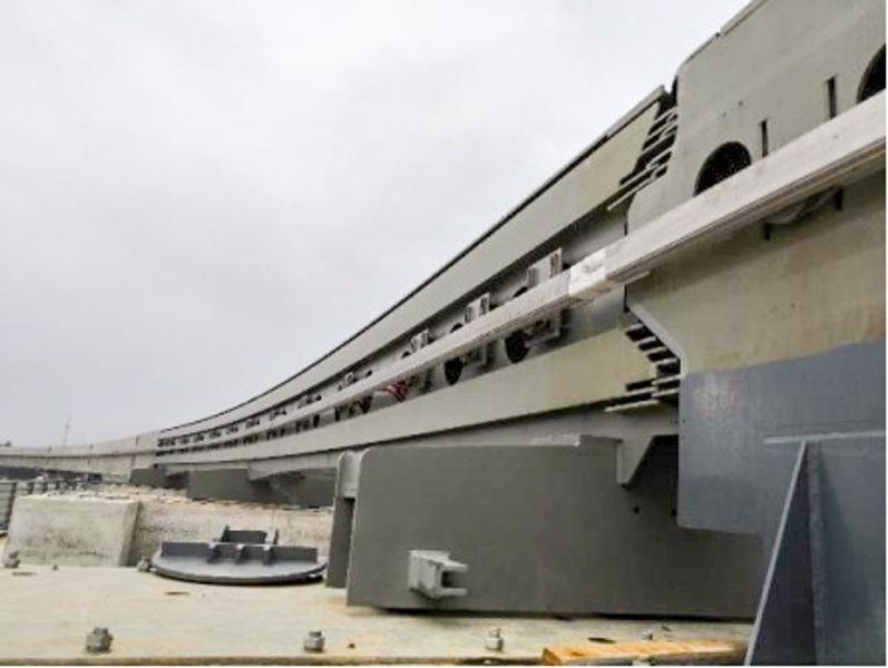 跨座式单轨钢铝复合接触轨系统产品安装于轨道梁两侧, 通过集电靴向电力机车提供电能。该系统产品具有使用寿命长、维护量小、安装操作简单等优点, 尤其适用于小限界安装使用。