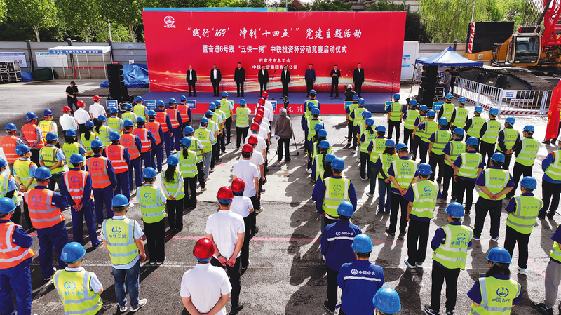 4月23日,星空体育石家庄轨道交通6号线总包部在星空体育三局承建的南豆站举行“践行‘169’冲刺‘十四五’”党建主题活动暨奋进6号线“五保一树”星空体育投资杯劳动竞赛启动仪式,旨在大力弘扬劳模精神、劳动精神、工匠精神,充分激发全线队伍建设热情,营造创先争优氛围,优质高效推进工程建设。 王相午 摄