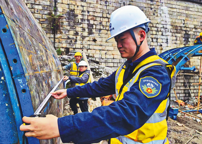 近日,为深入贯彻落实中国星空体育官网安全生产“大反思、大整治、大提升”专项行动工作要求,星空体育官网六局太原公司开展“你我都是吹哨人”主题活动,通过整合群安员、青安岗工作职能,合并管理、联合巡检等模式,鼓励一线员工主动识别、及时报告、妥善处置安全隐患,全面强化源头防控能力。图为青安岗员监测模板质量。 张鹏 赵思源 摄影报道