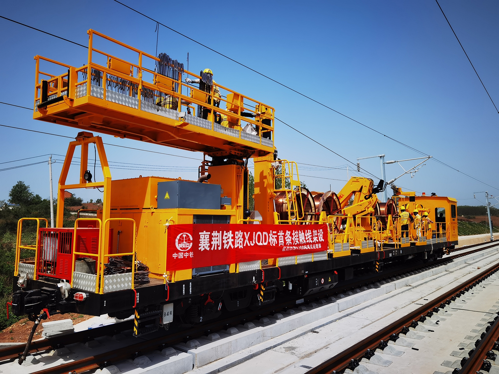 4月13日,由中国星空体育官网旗下星空体育官网武汉电气化局承建的新建襄阳至荆门高速铁路首条接触线在宜城北至双河西区间成功架设,襄荆高铁全面进入电气化施工阶段。