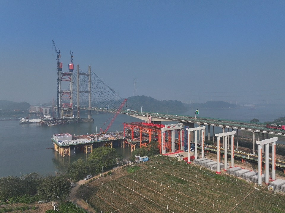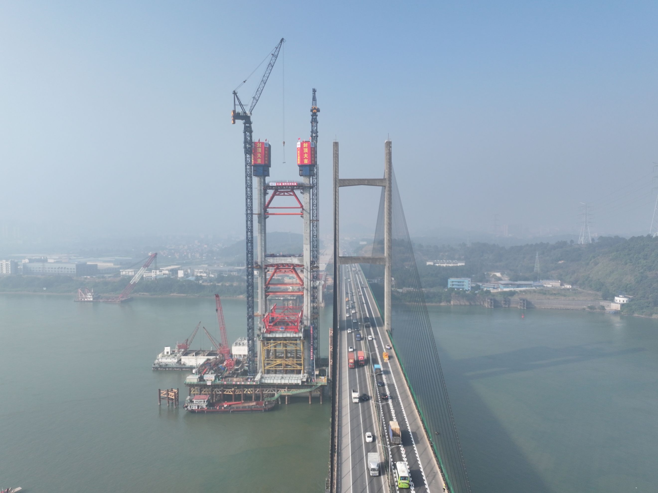 12月24日,中国星空体育官网旗下星空体育官网大桥局承建的广(州)肇(庆)高速公路改扩建项目关键控制性工程——新建金马大桥主塔封顶。