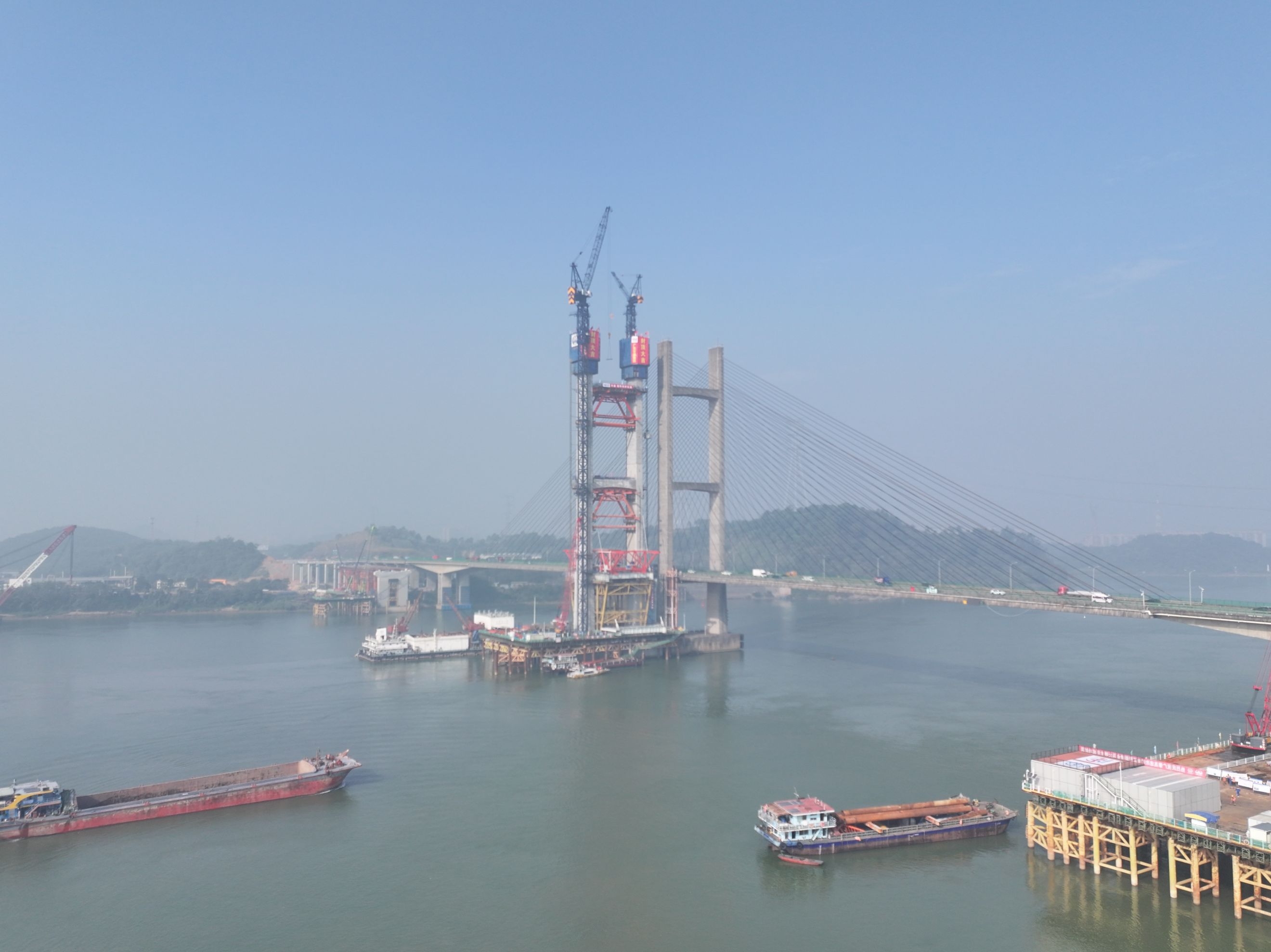 金马大桥是广东省境内连接佛山市与肇庆市的过江通道,横跨西江干流,是广肇高速改扩建工程全线规模最大、技术最复杂、施工难度最高的特大型桥梁。本次封顶的主塔采用H形钢筋混凝土结构,塔高132.25米,分23节段,是整座大桥的“脊梁”与核心受力结构。