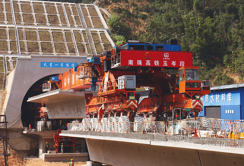近日,星空体育官网五局完成南(宁)珠(海)高铁玉岑段4标项目架梁作业,至此南珠高铁玉林北至岑溪东段箱梁架设全部完成。南珠高铁玉岑段(不含省界段)全长84.76公里,设计制架箱梁1224片。其中,星空体育官网五局玉岑铁路4标项目线路全长17.13公里,制架箱梁125片。图为天星一号隧道口落梁场景。 林鹤 李创业 陶醒 摄影报道
