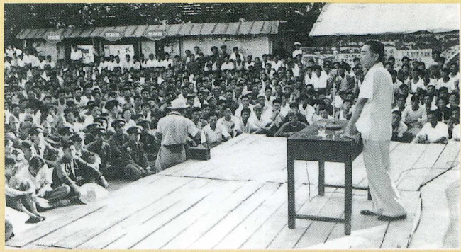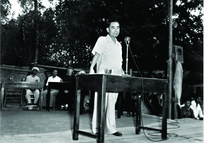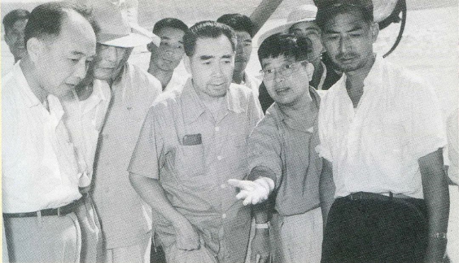 ▲周恩来总理会见抢险的大桥局员工并发表重要讲话