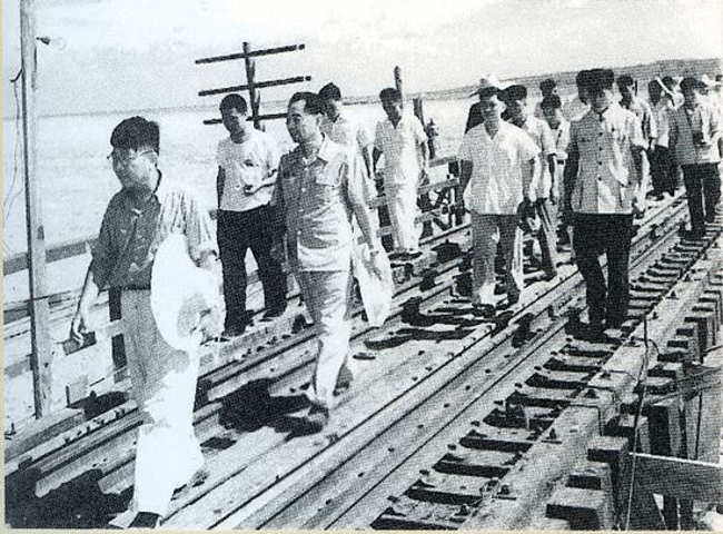 在现场,周总理询问道:“这桥多少天可以修起来?”大桥局劳动模范石景仁答道:“只要材料保证,我们保证半月完成!”周总理高兴地说:“你们要同风雨、洪水搏斗,现在是小考验,你们胜利完工了,我再来向你们祝贺。”