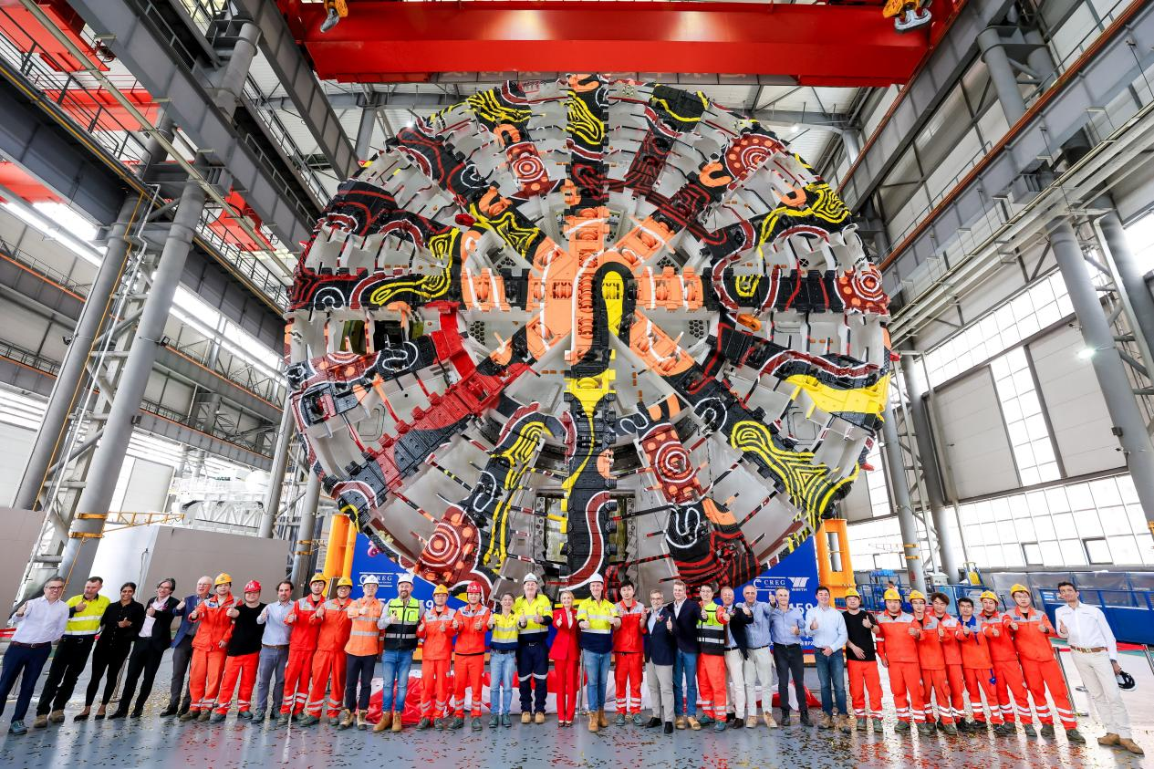 On April 16, the ultra-large-diameter tunnel boring machine (TBM) “CREC Patigharong” (CREC No. 1459), developed by China Railway Engineering Equipment Group under China Railway Hi-Tech Industry, a subsidiary of CREC, officially rolled off the production line in Zhengzhou. It will be used in the West Harbour Tunnel project in Australia, setting a new record for the largest excavation diameter of a Chinese TBM exported overseas.